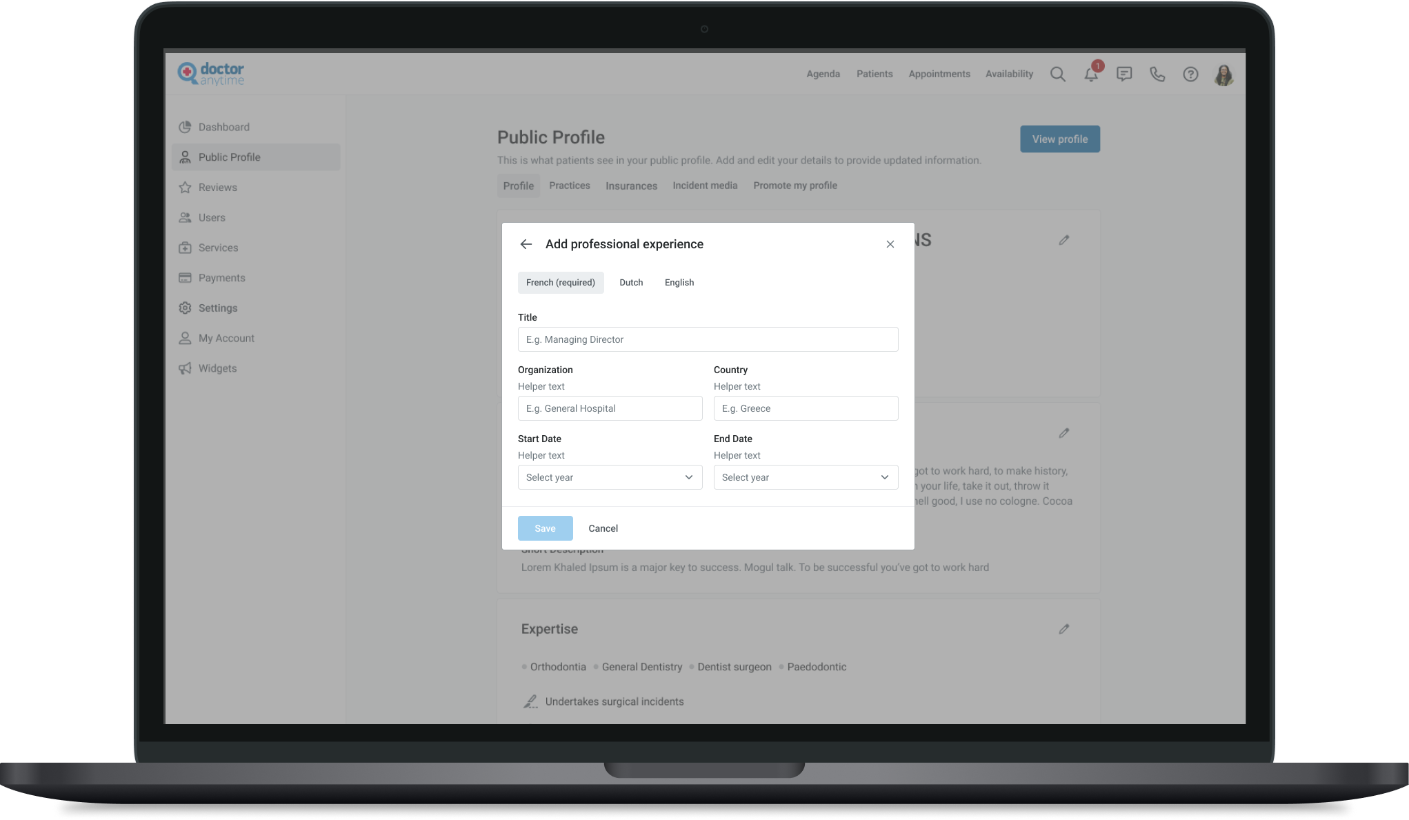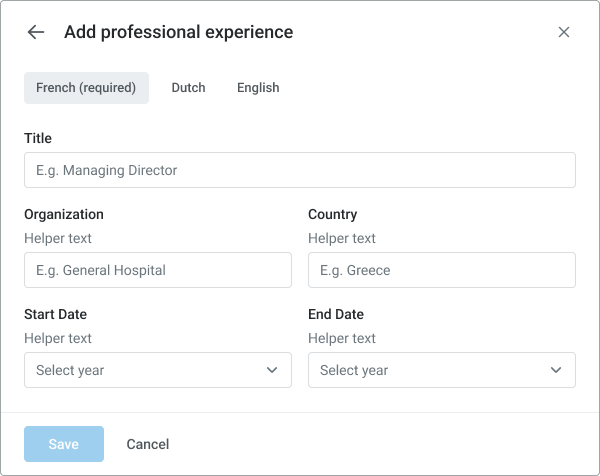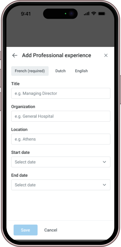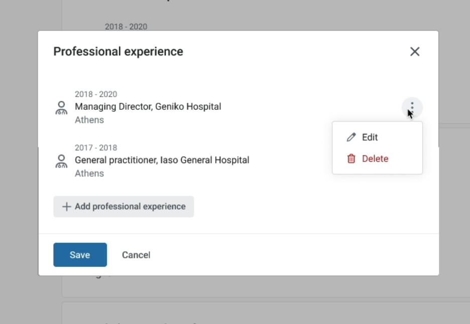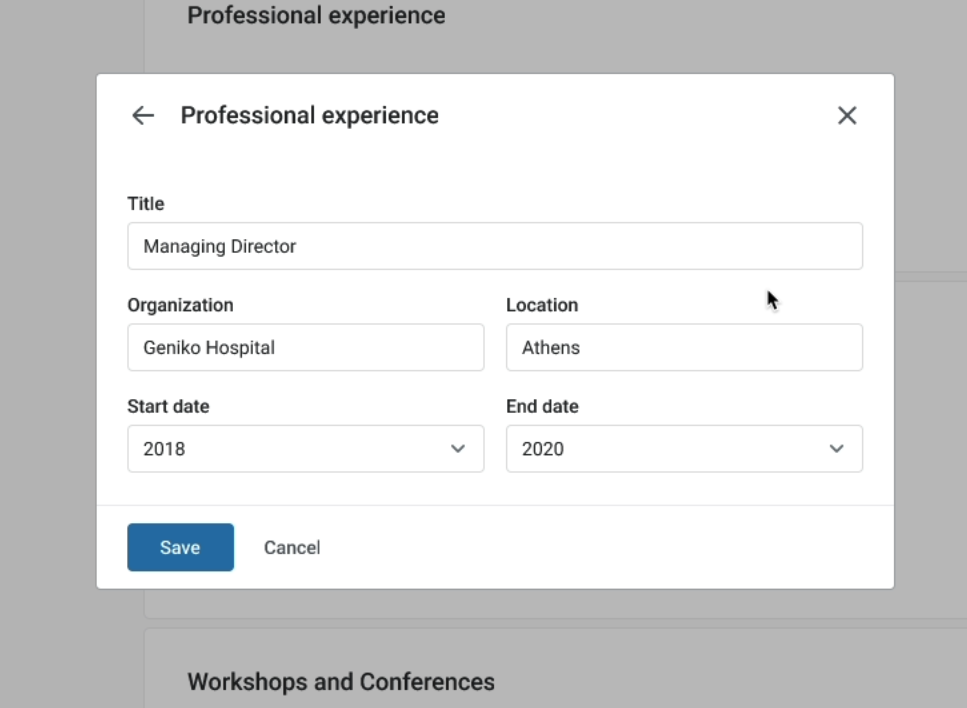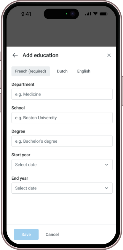 We also created dedicated sections that align with the structure of a doctor’s CV, ensuring all doctors provide consistent information, such as degrees, university names, and graduation dates. To achieve this, we implemented structured data fields for more accurate and standardized input, replacing the previous free-text format, which often resulted in incomplete or incorrect information.