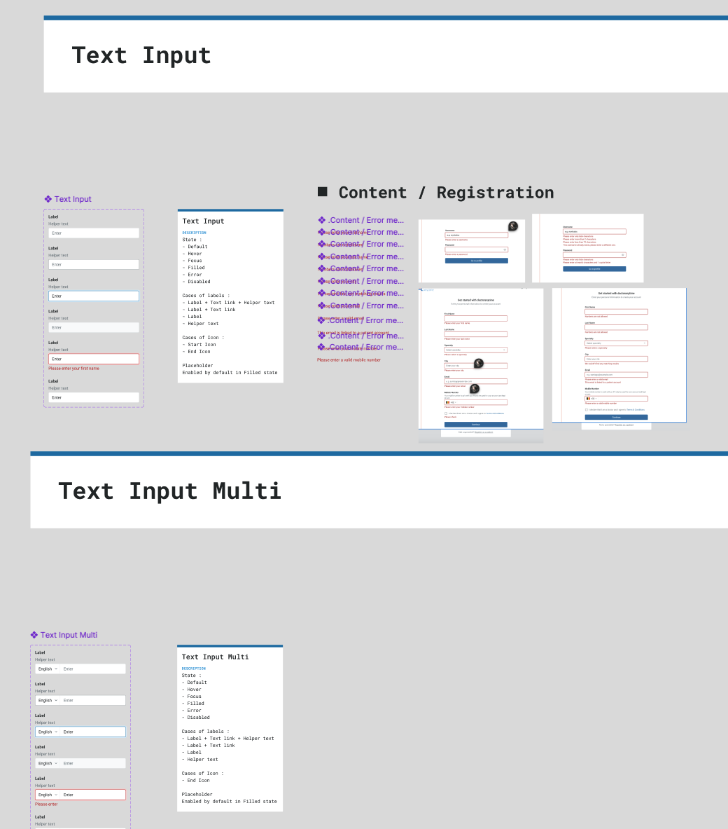 We designed the input fields with various states, including default, error, hover, and active, along with embedded icons, labels, helper text, and placeholders to enhance usability.
