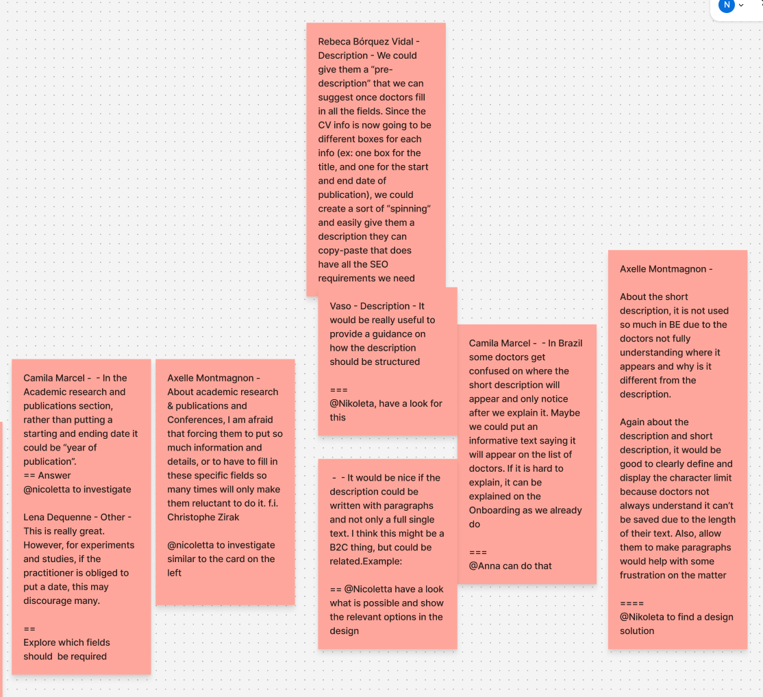 After extensive discussions with the team to address the challenge of handling the doctor's CV across multiple languages, we decided to conduct a 'Crazy 8' exercise to brainstorm potential solutions.