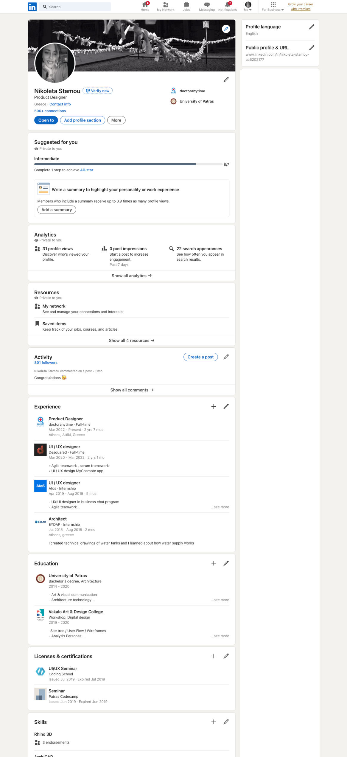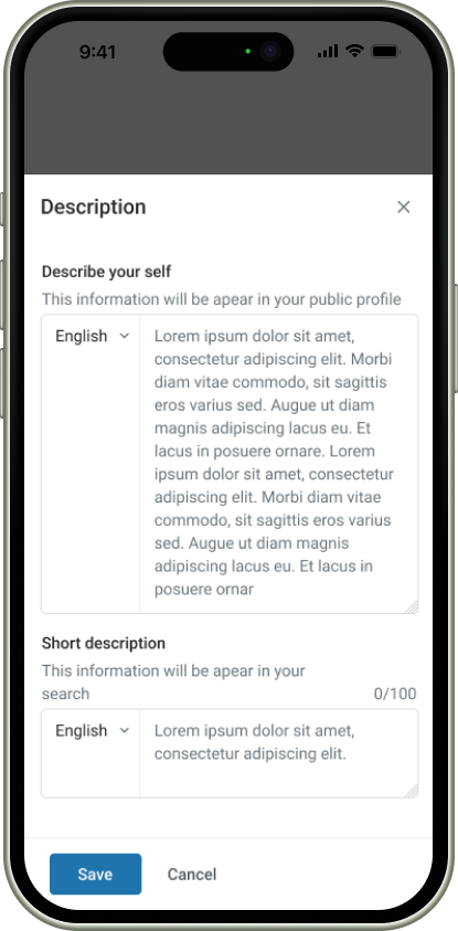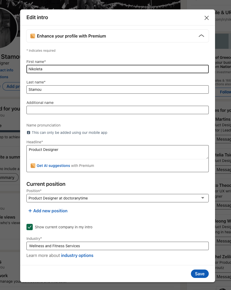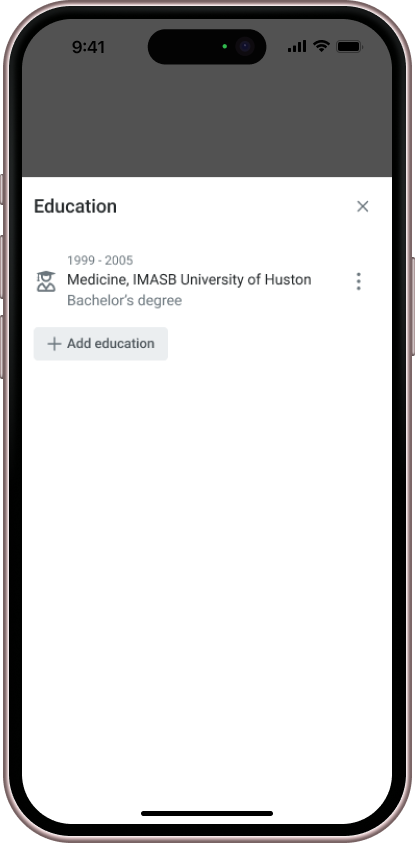 The inspiration for completing the information in the public profile was drawn from the structure of LinkedIn. We carefully analyzed its flow and user experience, then tailored and adapted those insights specifically to fit the unique needs and functionality of Doctoranytime.