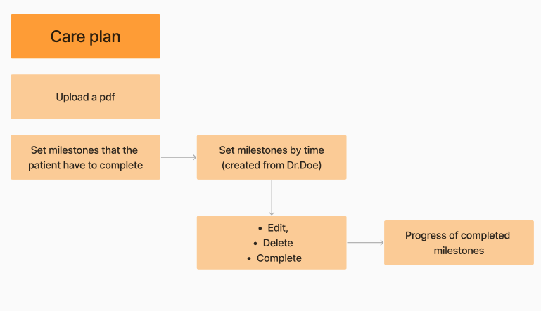 The care plan is developed collaboratively by all medical specialties, allowing them to upload files related to nutrition, exercises, and other necessary activities for the user. Additionally, they can set milestones with specific goals to incorporate a sense of gamification and track progress effectively.