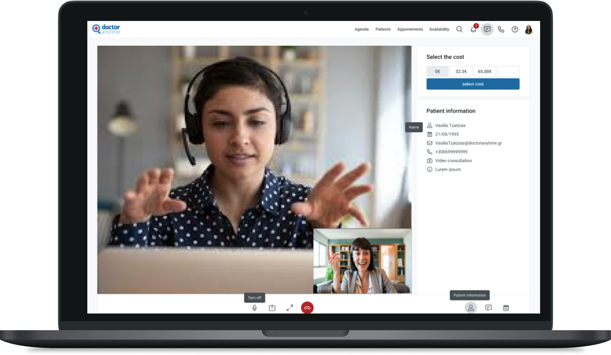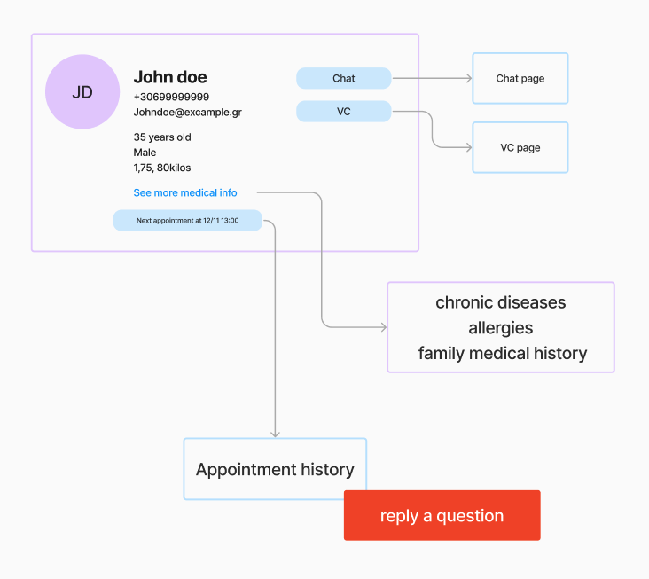 We concentrated primarily on patient information, as it was a new feature for the company, while the video call functionality already existed in Doctoranytime and had limited technical flexibility for changes.