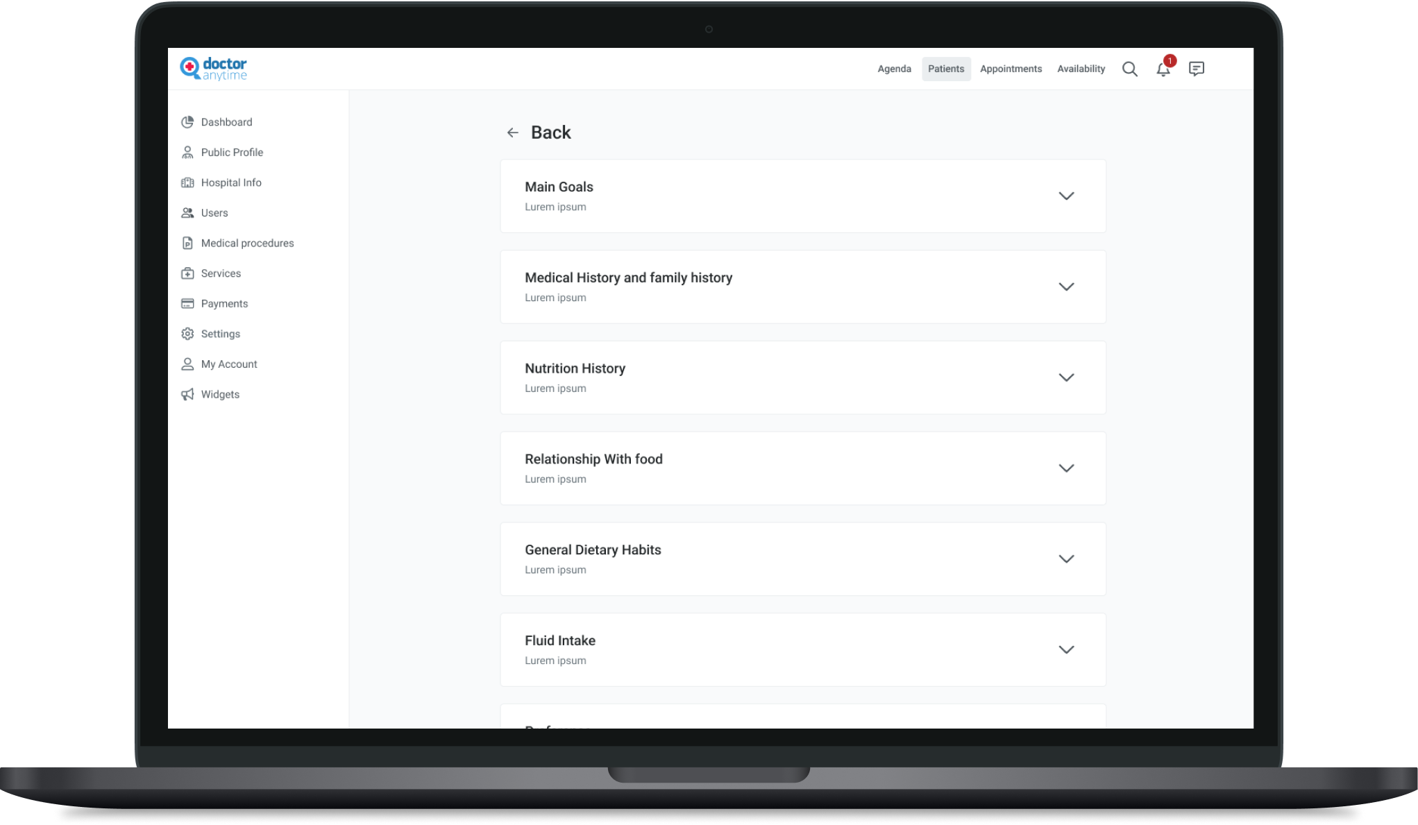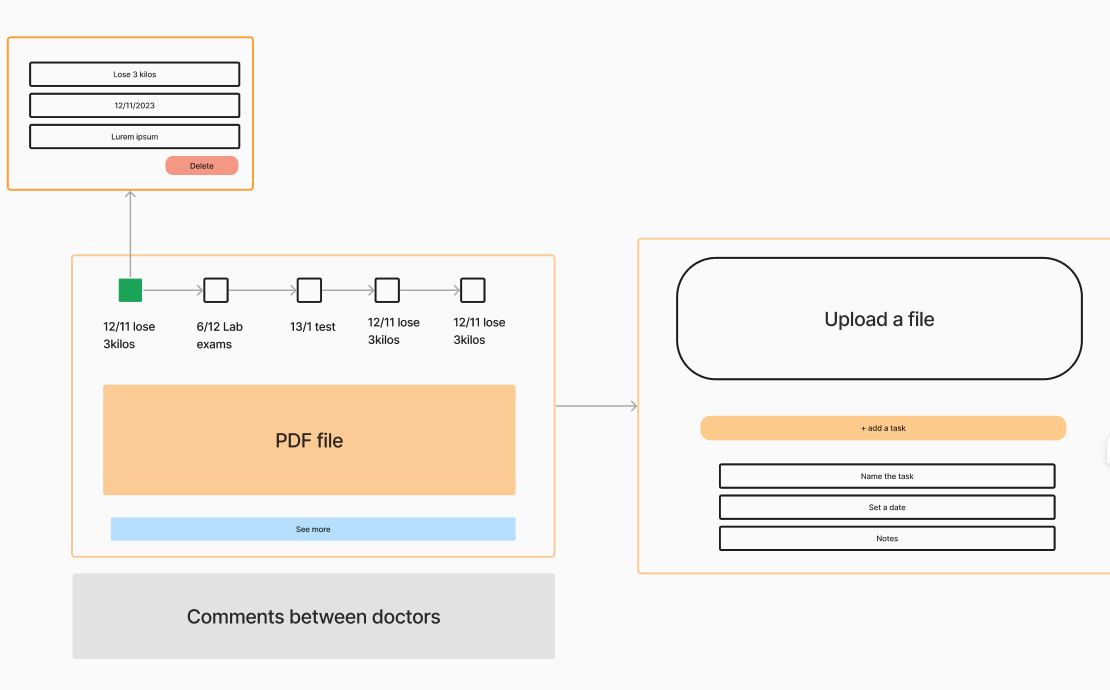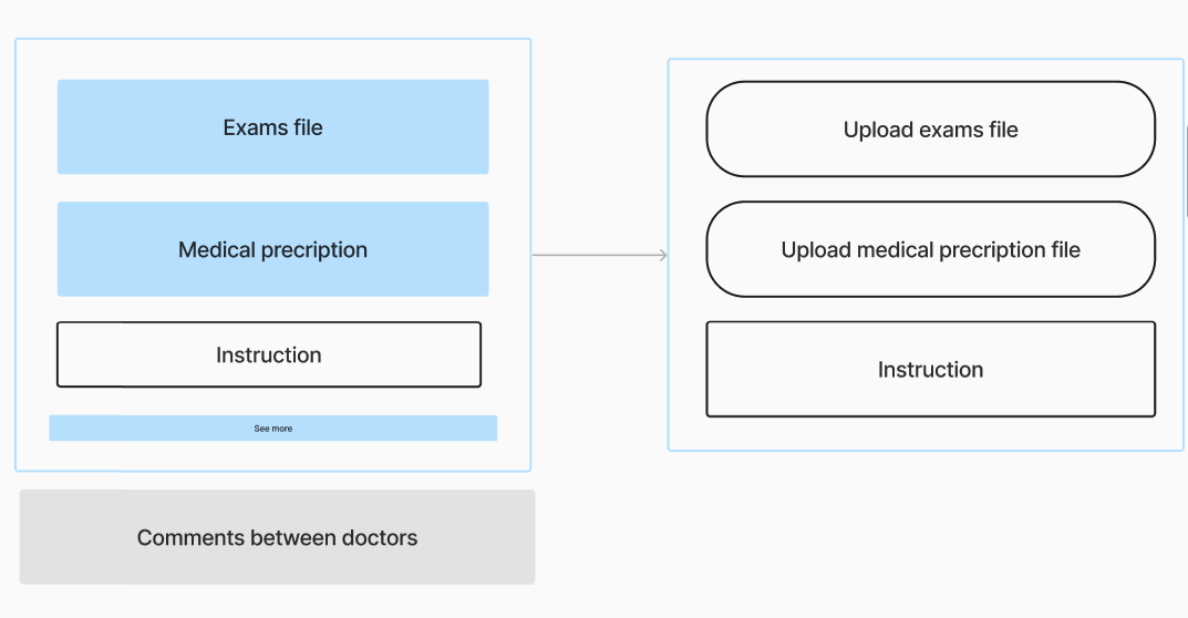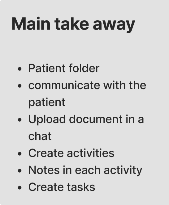 We developed an information architecture for the medical folder, outlining the data that would appear on the page. This helped us assess its technical feasibility and ensure seamless integration into the platform.