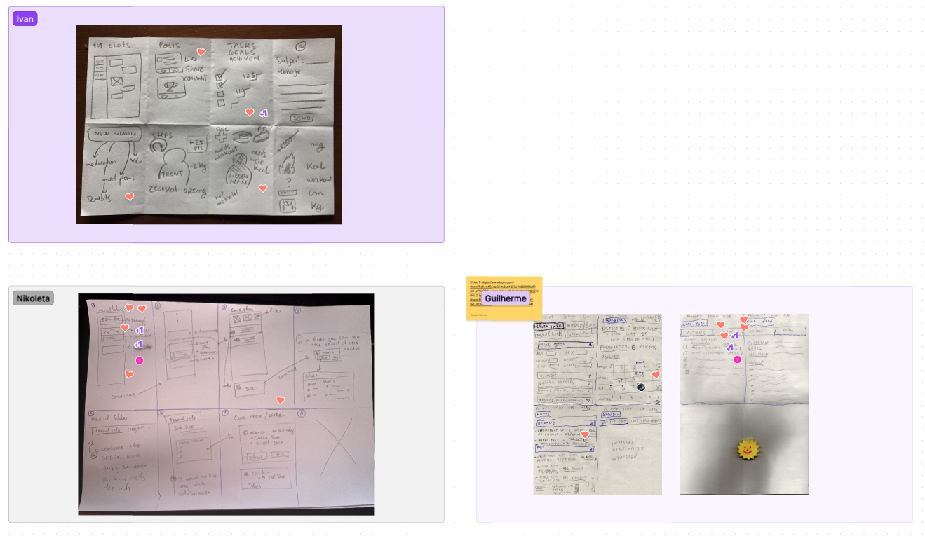 Following this analysis, we invited the Pluma stakeholders to participate in a Crazy 8 exercise. We gave them key elements and context, outlining specific goals to guide their brainstorming and inspire creative solutions during the session.