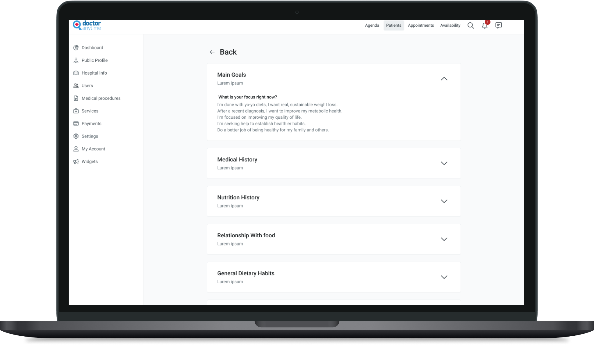 Based on each patient's history, we want specialized experts—such as psychologists, dietitians, endocrinologists, and physical therapists—to assess the patient's case individually. These experts will set personalized goals, like recommending specific tests, and track the patient's progress over time, continuously refining their approach to ensure optimal outcomes.