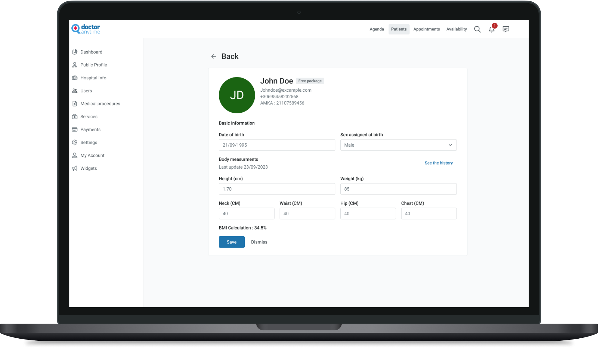 The first section includes personal info about the patient: